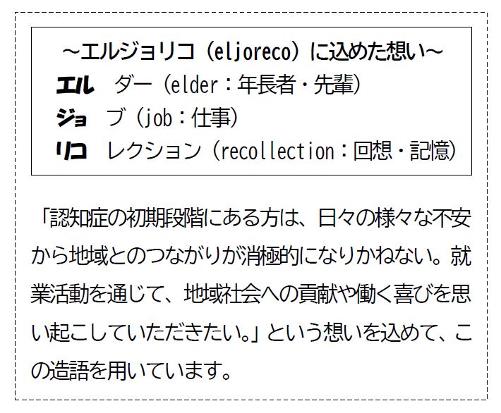 ホーム > 区政情報 > 広報・広聴 > 報道発表資料 > 令和8年の報道発表資料 > 報道発表資料(令和8年3月) > ~もの忘れや認知症があっても、地域で自分らしく働くことができる~「チームオレンジお助け隊(エルジョリコ:eljoreco」の活動が始まりました!