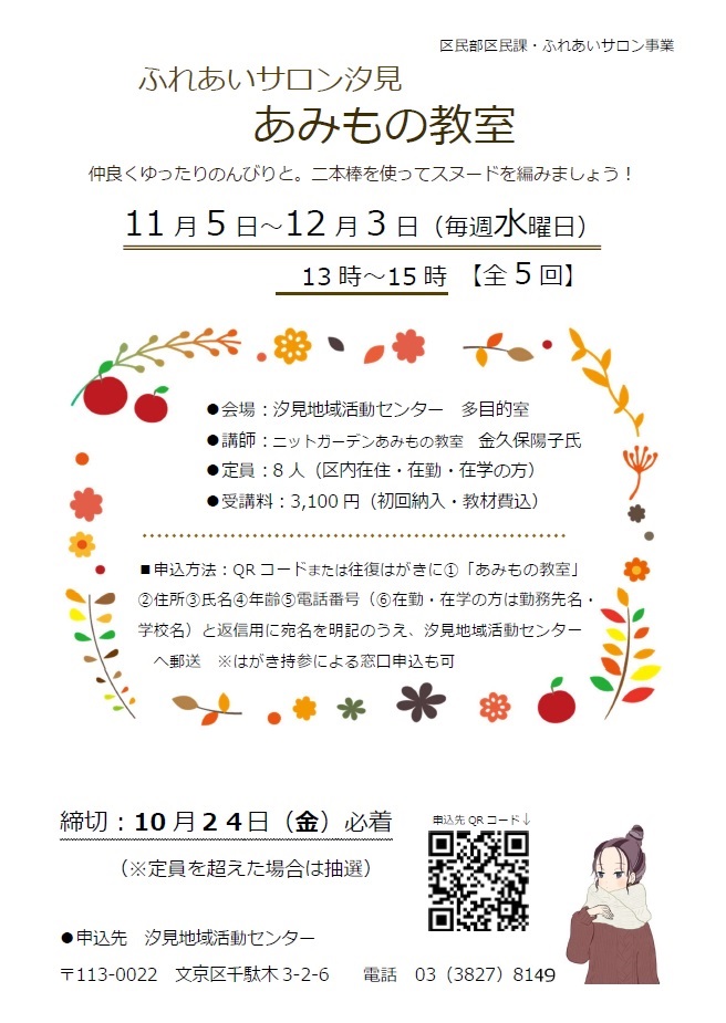 ホーム > 手続き・くらし > 地域活動・コミュニティ > 地域振興 > ふれあいサロン汐見 > ふれあいサロン汐見「あみもの教室」